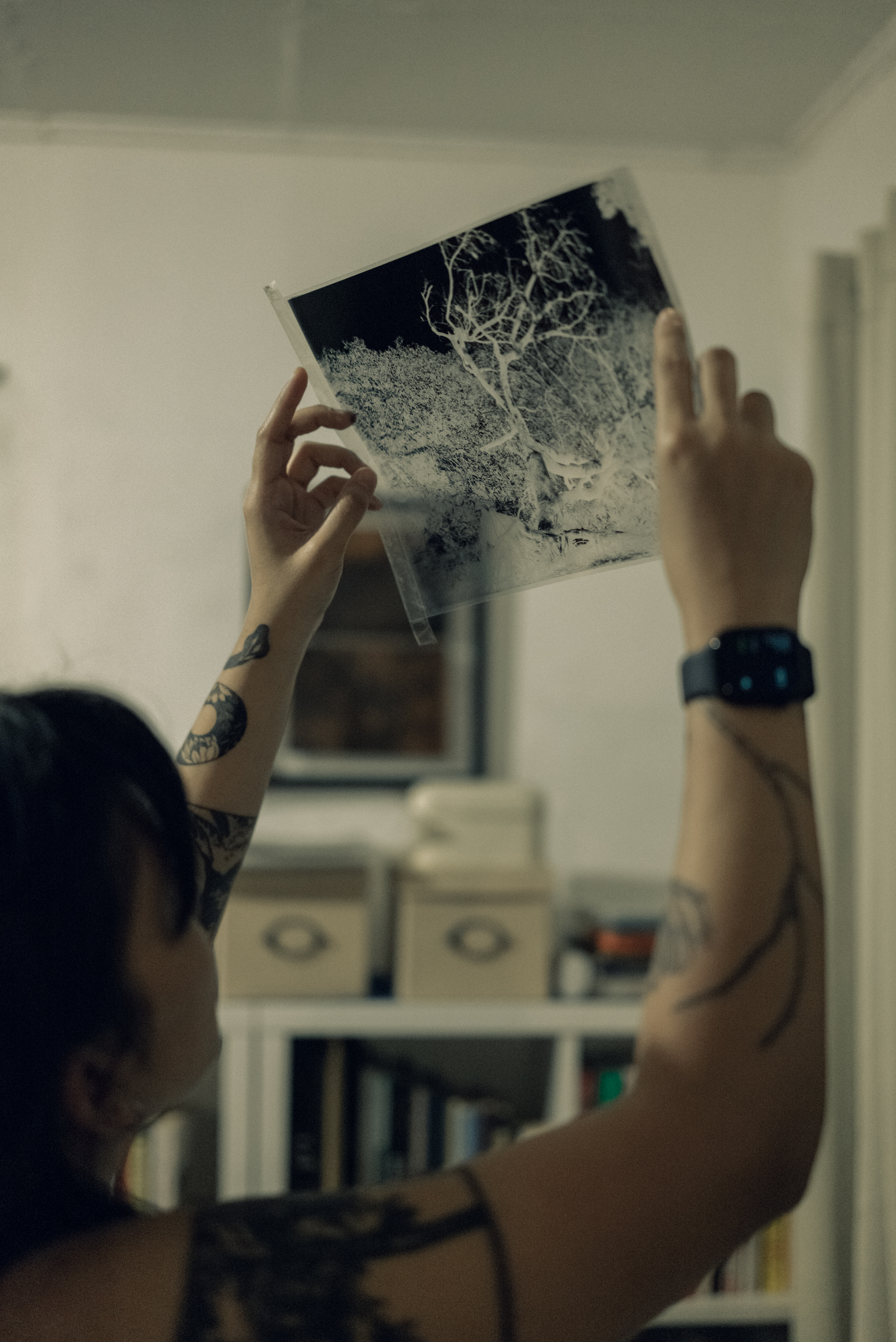 The cyanotypes are subject to fading under prolonged sunlight—a process intentionally left to unfold during the exhibit. This inevitable transformation mirrors the slow disappearance of nature and the stories tied to it, challenging viewers to question their role in the systems perpetuating environmental loss.