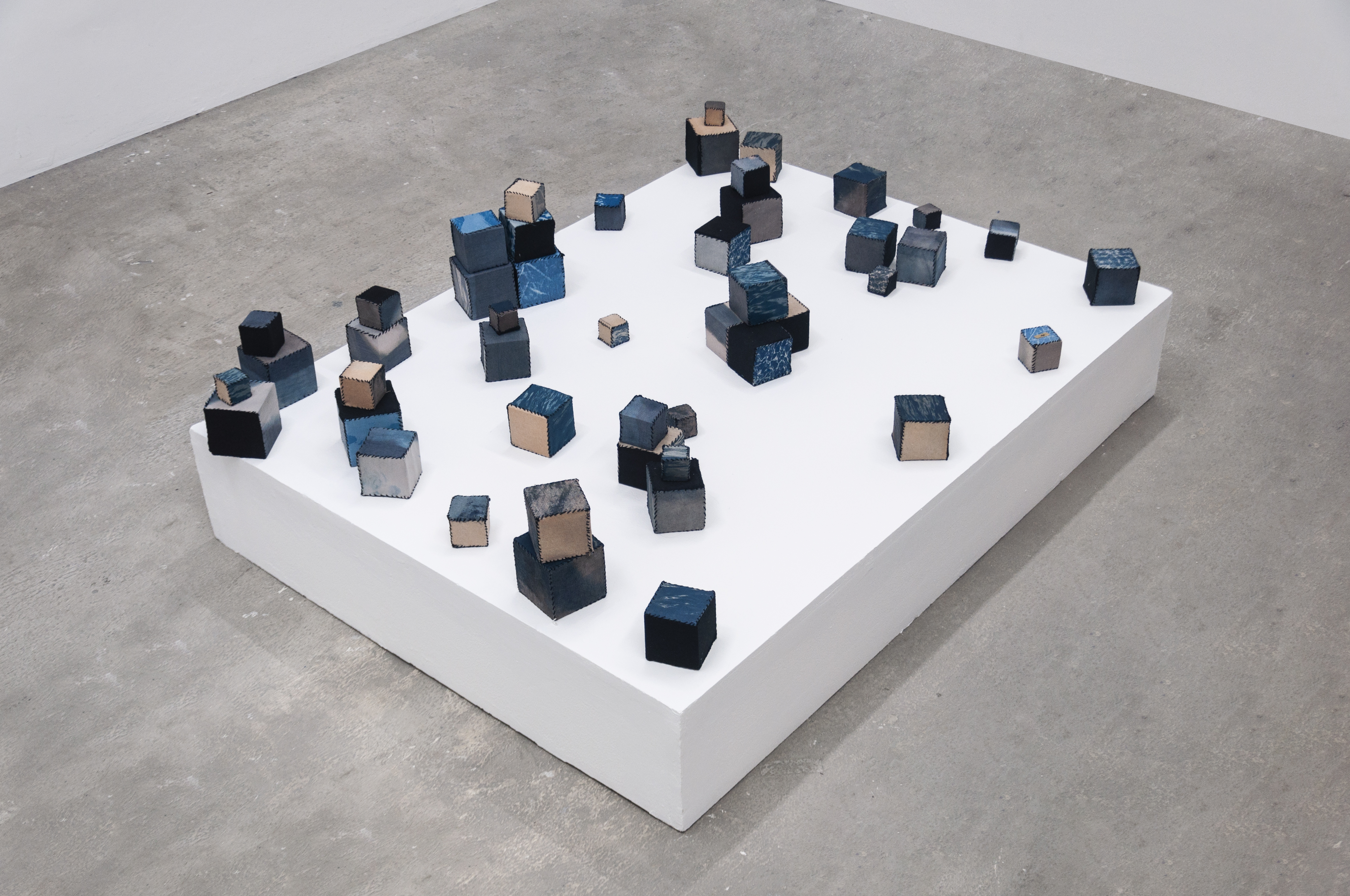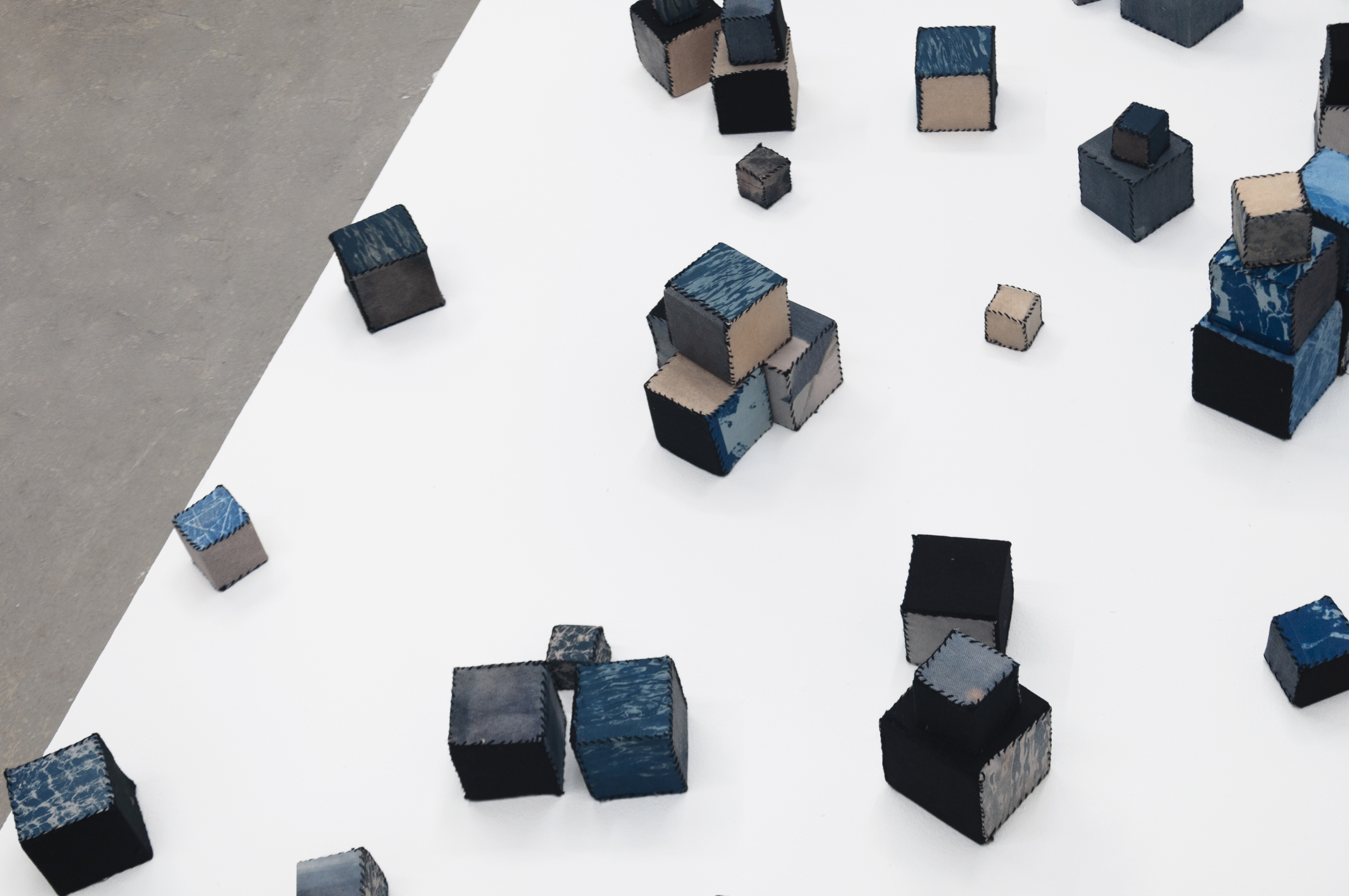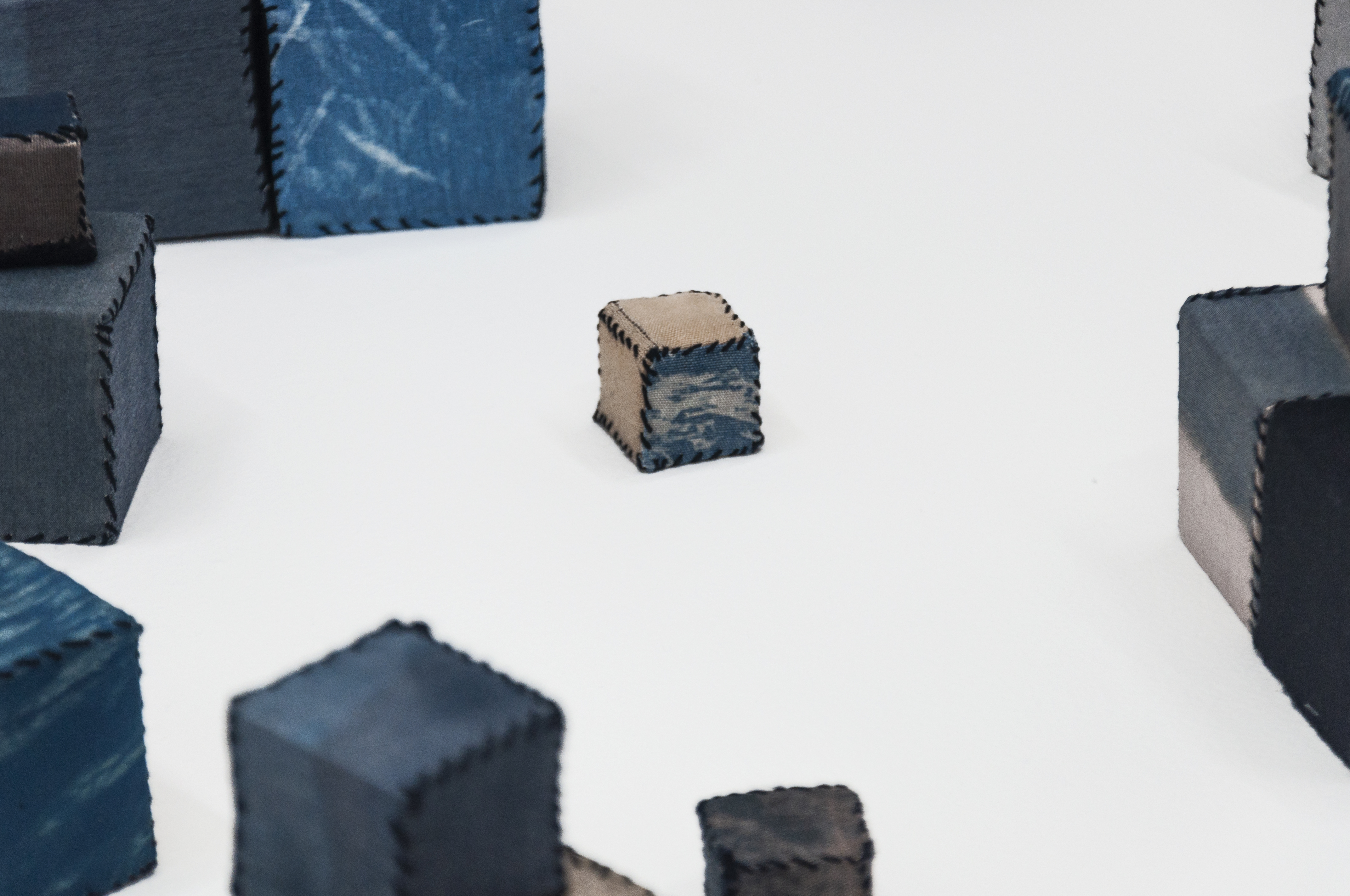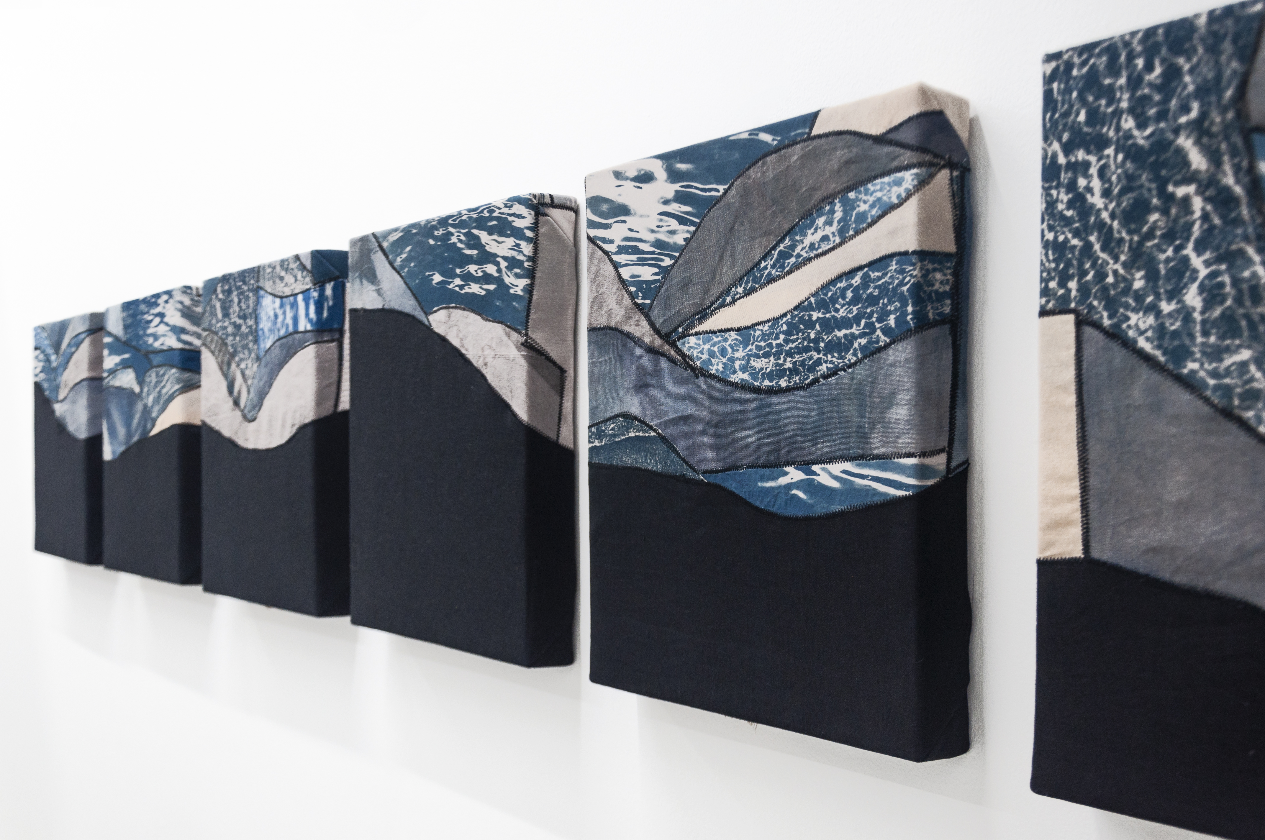 Briefest Forms, 2022, Cyanotype, wood, textile, and thread